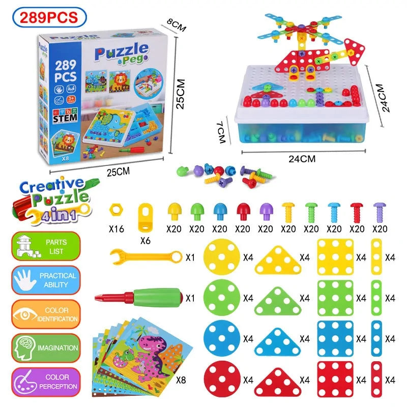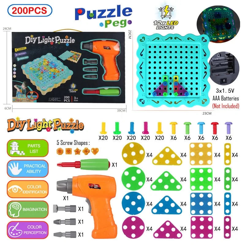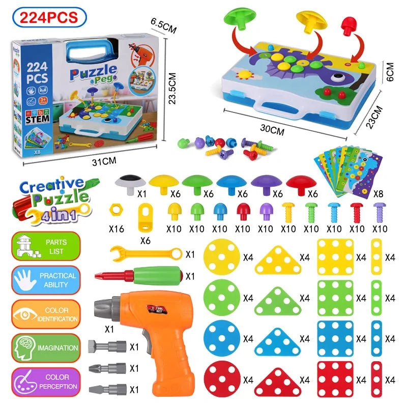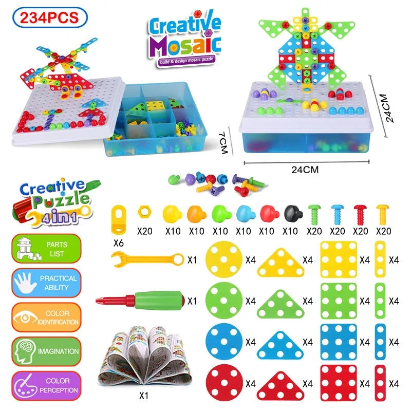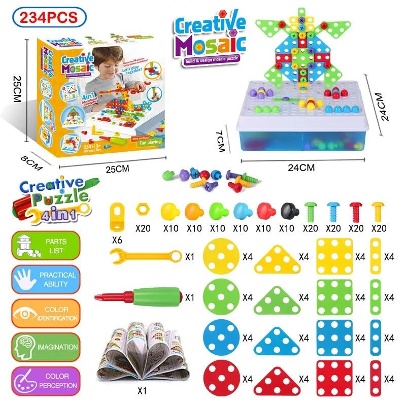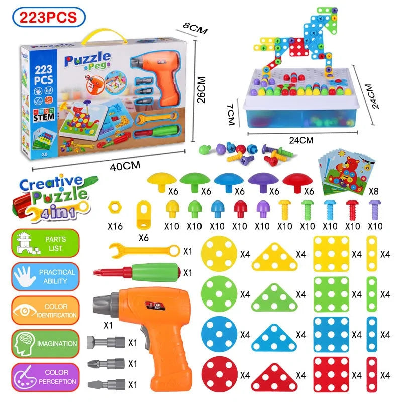 Ideal for children eager to explore and create, this Electric Drill Creative Puzzle Mosaic Toy Set is perfect for fostering creativity, learning, and fun!