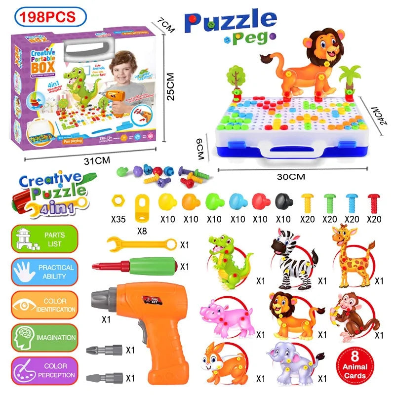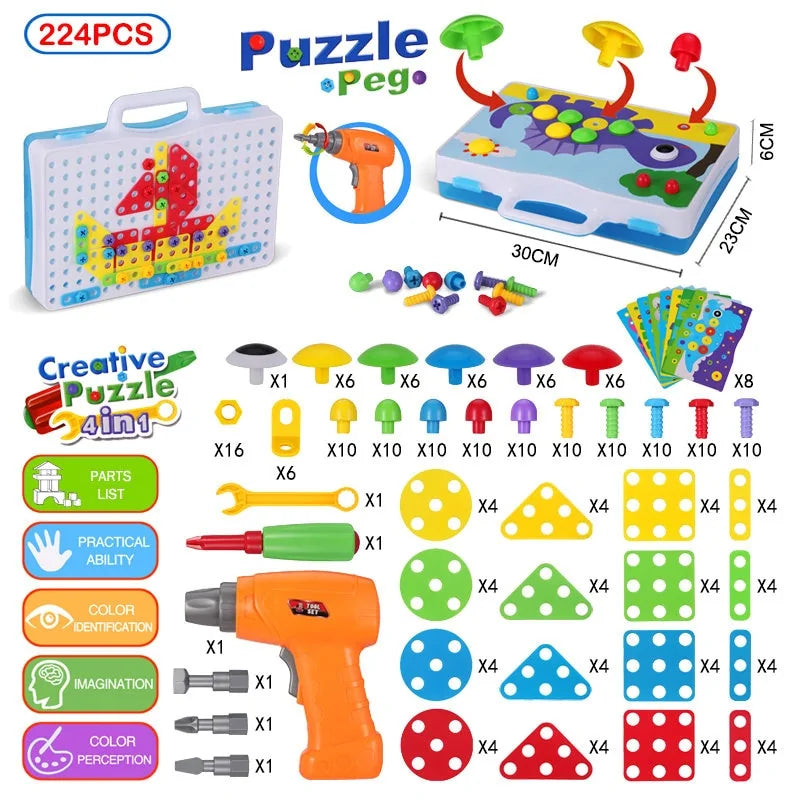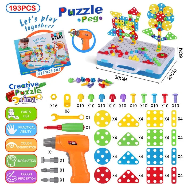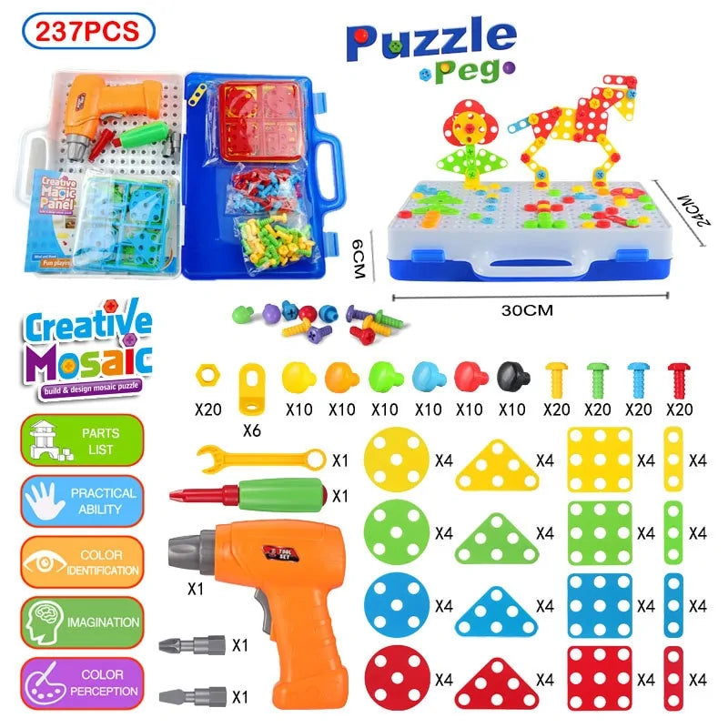 Unleash your child’s creativity and enhance their cognitive skills with our innovative Electric Drill Creative Puzzle Mosaic Toy Set. Designed specifically for young minds, this set combines fun and learning in one engaging package.