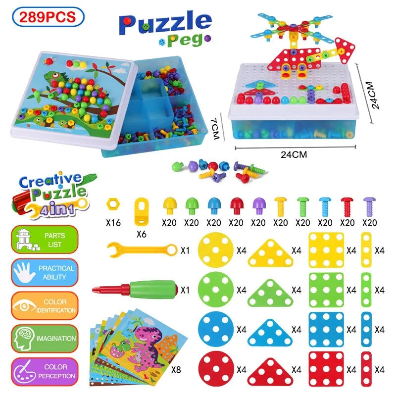 3D Mosaic Puzzle Building Bricks with Drilling Screw Toys for Children