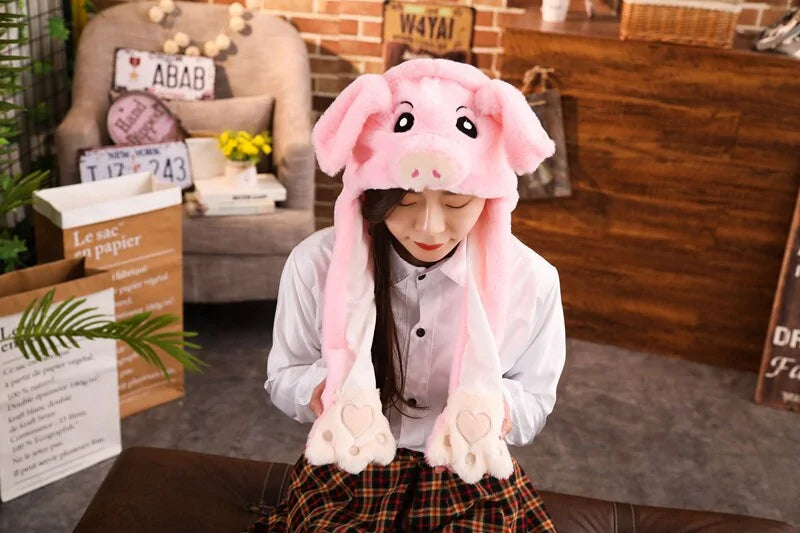 Rabbit Ear Airbag Hat: Fun Plush Toy Cap for Kids and Adults
